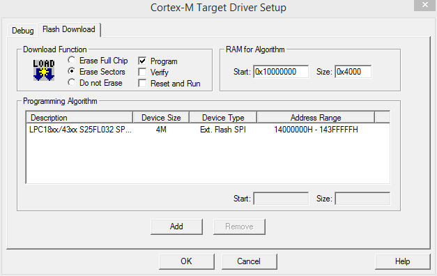 - 7. Scroll and select "LPC18xx/43xx S25FL032 SPIFI".