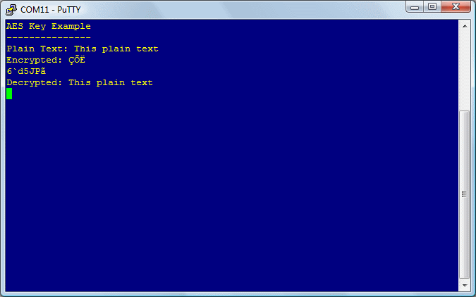 This example shows how to set an encryption key and then use that key to encrypt some plaintext. It then sets the decryption key and decrypts the previously encrypted block back to plaintext.