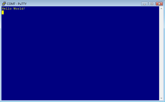 A very simple “hello world” example. It simply displays "hello world" on the serial port and is a starting point for more complicated applications.