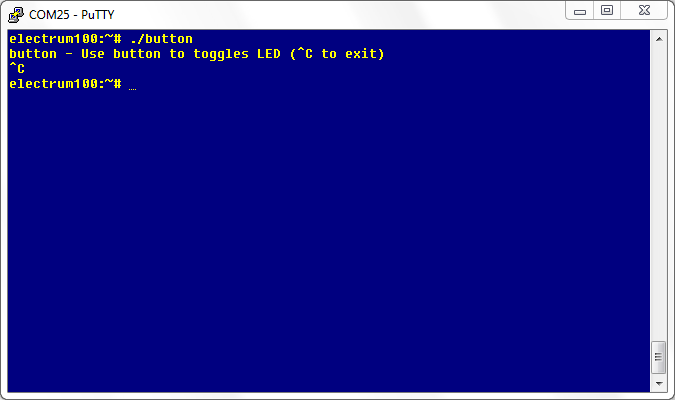 This example uses the button connected to microcontroller pin PA31 to control the green user LED (ds2) at pin PA30.