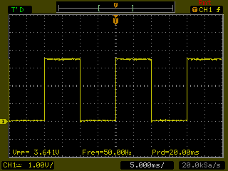 This example describes how to configure System Tick timer to generate an interrupt every 10ms. In this example the System Tick timer is clocked internal by the CPU clock at 100MHz. After each 10ms, System Tick will generate an interrupt and toggle the P0.4 pin on J2 pin 3 at 50MHz. The signal output is shown below.