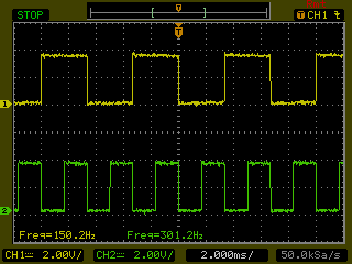 Below is a screen capture of the signal when 150 was entered for the first frequency and 300 was entered for the second frequency.